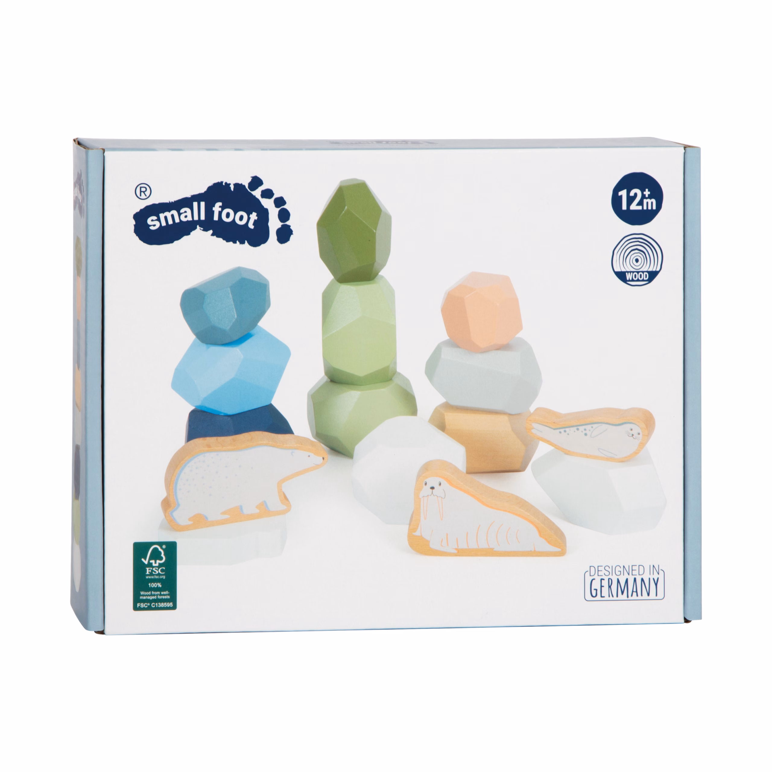 • Komplekt: 11 tasakaalukivi, 3 loomakujukest ja 1 jääpanga kujuline kivi FSC® 100%-sertifitseeritud puidust